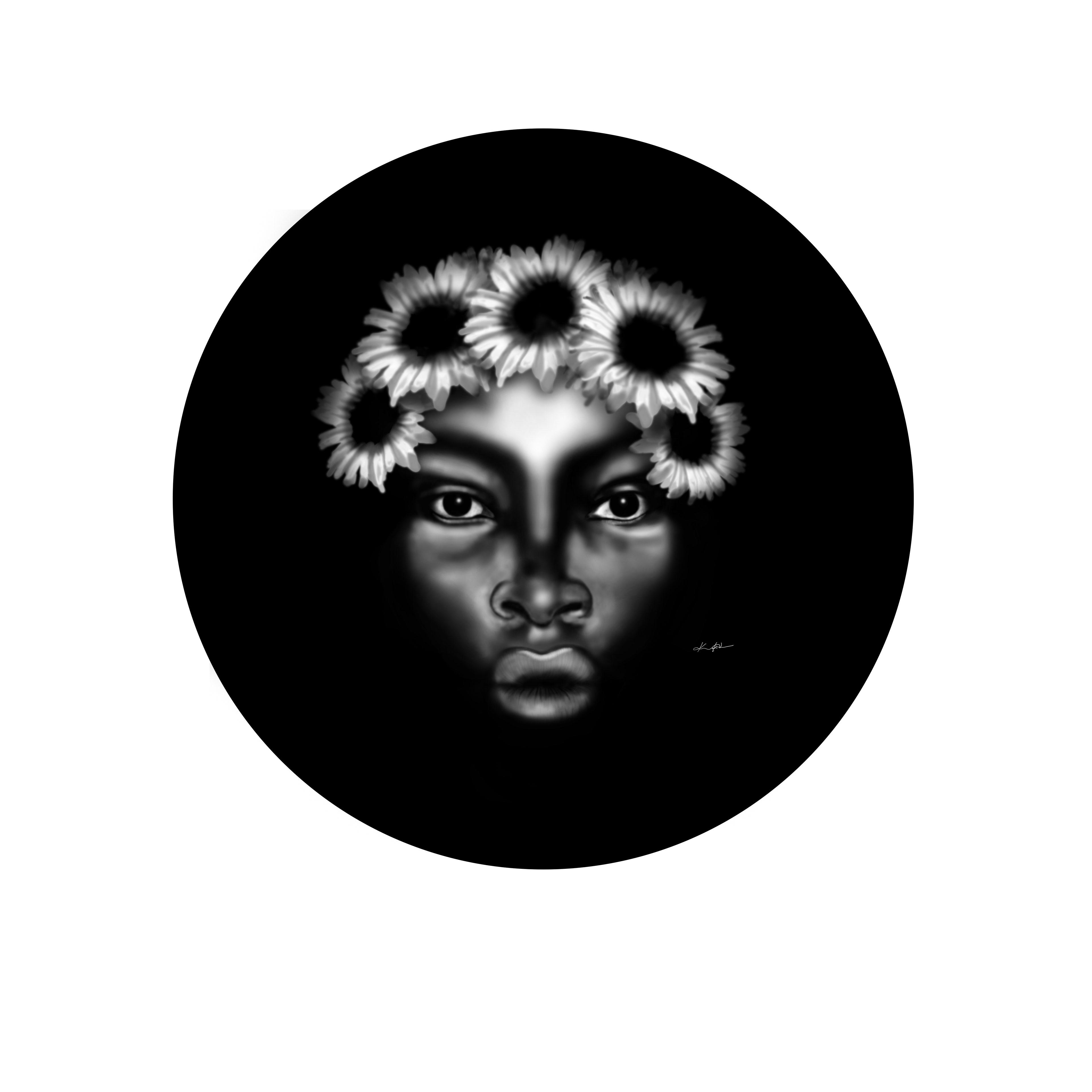 A Adobe Photoshop Illustration of a female face using black and white tones.